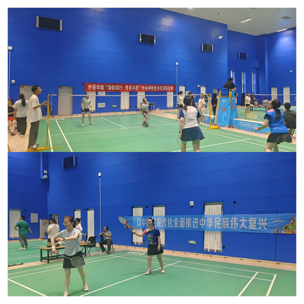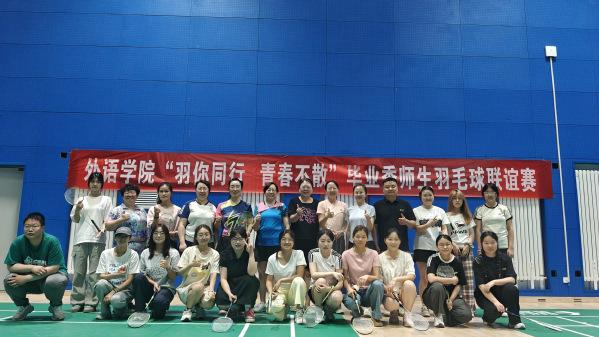6月18日,为促进广大师生身心健康,增进师生情谊,为毕业生留下珍贵的校园回忆,外语学院在校体育馆成功举办“羽你同行 青春不散”羽毛球师生联谊赛。学院30余名师生踊跃参与,共同呈现了一场激情四溢的体育盛会。