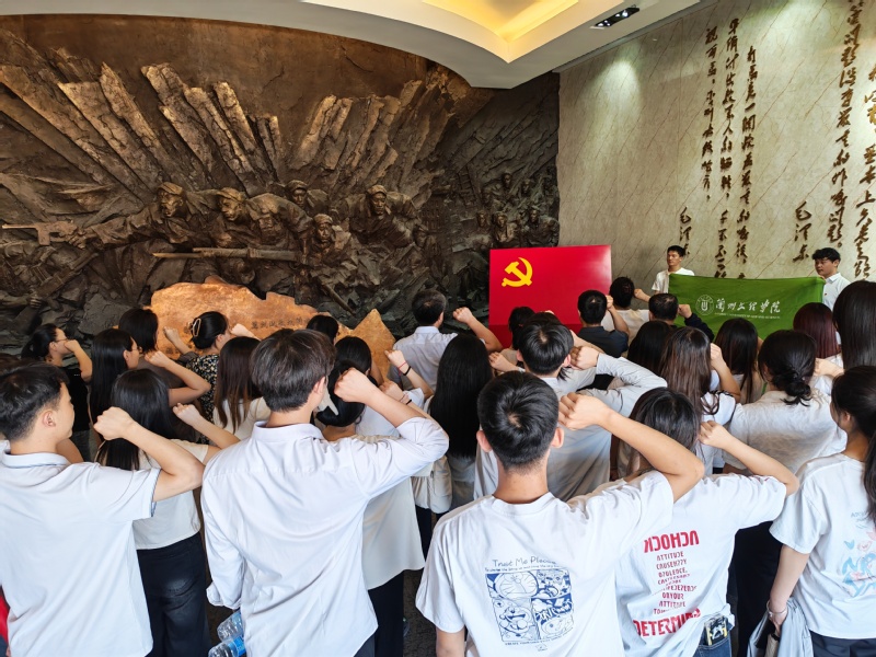 活动伊始,全体党员怀着崇敬之情齐聚人民英雄纪念碑前。三名学生党员缓步上前,在人民英雄纪念碑前敬献鲜花,深切缅怀为国家和人民英勇献身的革命先烈。随后,党员们前往兰州战役纪念馆,面向鲜红的党旗,在学生第二党支部书记的带领下,高举右拳,庄严宣誓,重温入党誓词。铿锵有力的誓言回荡在馆内,彰显着党员们对党的忠诚与为共产主义事业奋斗终身的坚定决心。