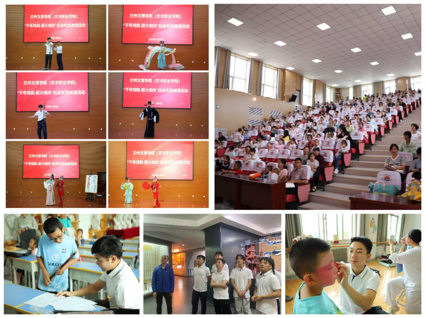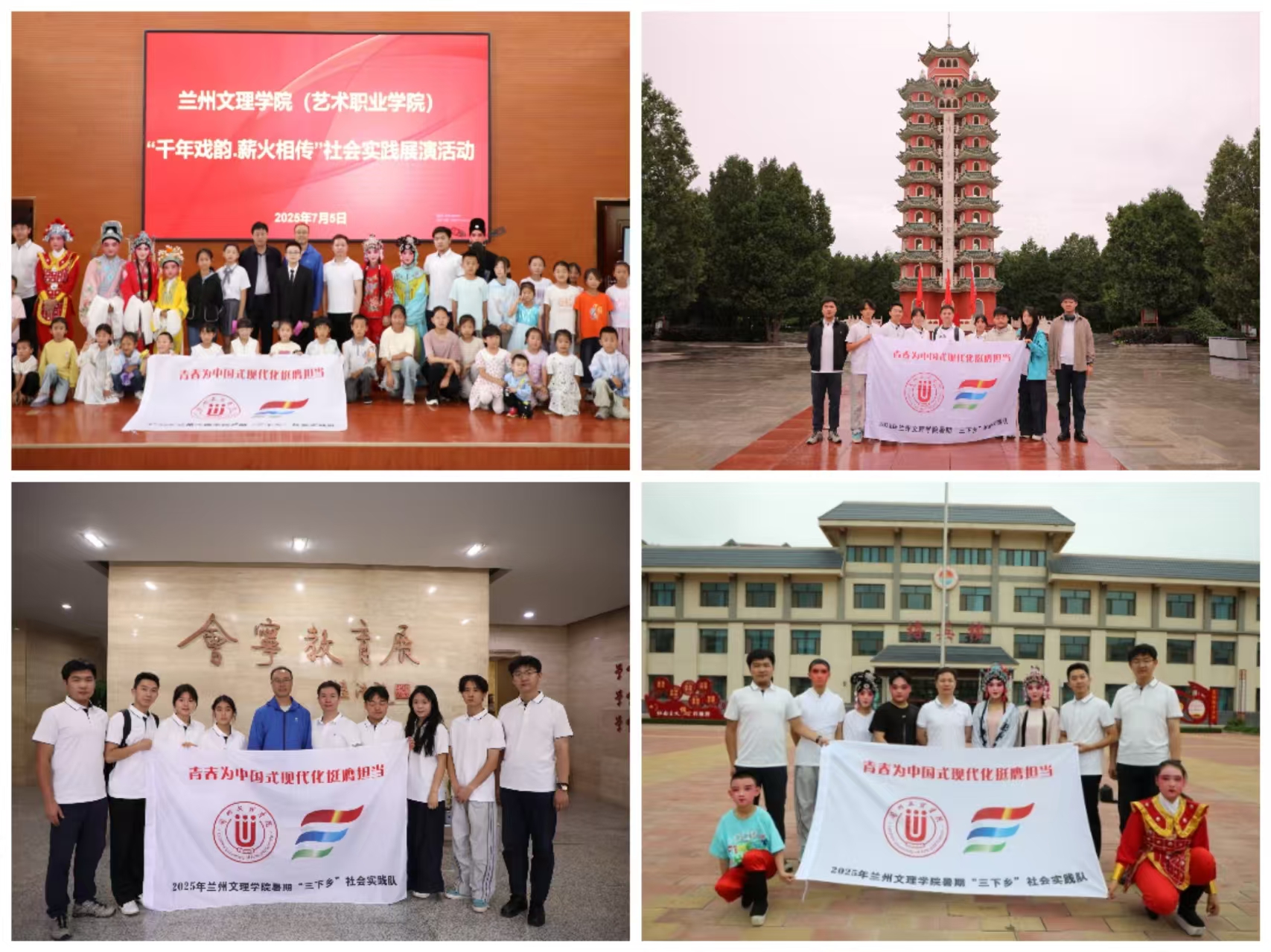7月5日至7日,学院紧密围绕校团委“青春为中国式现代化挺膺担当”主题,组织戏曲专业10余名大学生前往会宁县,开展“千年戏韵・薪火相传”社会实践活动。活动将专业教育与美育实践、红色研学有机结合。在文昌小学和校外活动中心,志愿者们通过精彩戏曲表演和音乐讲座,为当地青少年打开艺术之门,播撒中华优秀传统文化种子。在长征胜利纪念馆和教育馆,学生们聆听红色故事,感悟革命先辈奋斗精神,深入学习会宁教育“三苦两乐”精神,传承基层教育工作者无私奉献情怀。