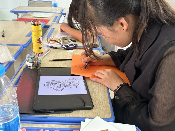 开营仪式上,AI生成皮影动画、智能绘画互动等展示点燃了孩子们的兴趣。五年级学生李小明体验AI 绘画后兴奋地说:“电脑能画出我家乡的山!” 课程中,孩子们不仅学习皮影剪刻、染色等传统制作技艺,还在志愿者指导下用AI 工具设计角色、生成剧本,完成从传统技艺到数字化创作的跨越。此外,AI 光影实验、团队协作编创皮影剧、AI 再现庆阳民间故事等环节,让孩子们在探索科学原理、提升沟通能力的同时增强文化认同。