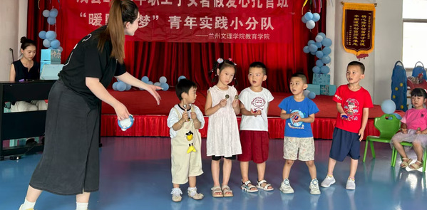 在“爱心幼教班”的课堂上,实践队成员发挥专业优势,为孩子们带来了一系列生动有趣的教学活动。经典儿歌《小老鼠上灯台》的传唱让课堂充满欢歌笑语,《特殊的电话号码》社会认知课程帮助孩子们掌握安全知识,而精心设计的趣味游戏则让孩子们在互动中提升协作能力。丰富多样的活动形式让孩子们在轻松欢乐的氛围中收获知识、增长见识。志愿者们还为孩子们捐赠了精心挑选的图书、文具等,用实际行动为乡村教育添砖加瓦。