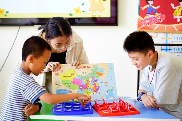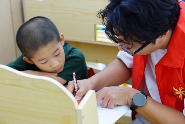 志愿者俯身辅导暑期作业,用生动比喻化解难题,孩子们争相提问的身影点亮课堂;共读《海底的秘密》时,角色扮演让海洋生物“跃然眼前”;便携钢琴奏响的旋律里,孩子们拍手跟唱。