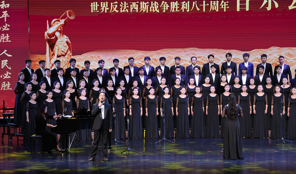 9月18日,纪念中国人民抗日战争暨世界反法西斯战争胜利80周年音乐会在伟德艺术实践中心举行。本次活动由党委宣传部(统战部)主办,艺术职业学院、音乐舞蹈学院承办,“雁之声民族管弦乐团”与“雁之声合唱团”联袂演出。在家校党委班子成员、机关各部门、各二级学院负责人及师生代表600余人观看演出。