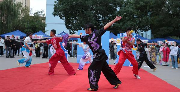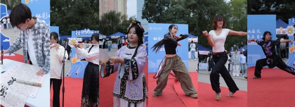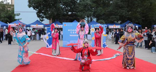 舞台上,社团成员们的表演更是亮点纷呈。武术社团拳脚生风,尽显力量与精气神;弈舞协会成员舞步灵动,与秋风共谱动感旋律;陶笛社团乐声悠扬,萦绕在广场上空。博彧国学社的同学衣袂飘飘,梨园戏曲社与雁苑戏剧社成员扮相精致,传统文化与青春活力相互碰撞,赢得了现场观众的阵阵掌声。