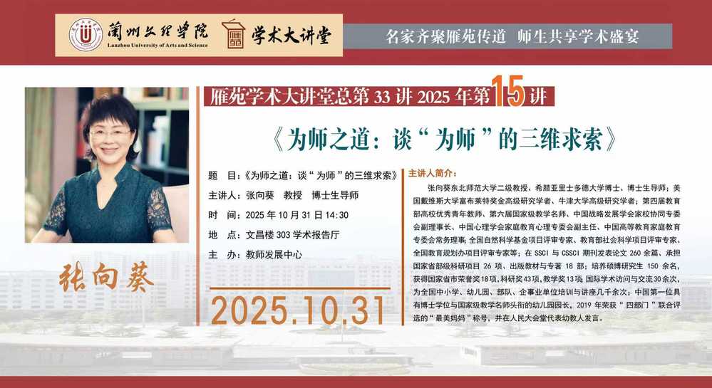 雁苑学术大讲堂预告:《为师之道:谈“为师”的三维求索》
