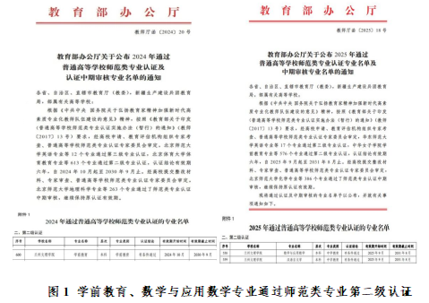 学前教育专业2024年10月通过师范类专业第二级认证,数学与应用数学专业2025年9月通过师范类专业第二级认证。有省级一流本科课程2门,省级教学团队1项,组建有一批校级教学创新团队、教学团队和科研团队。
