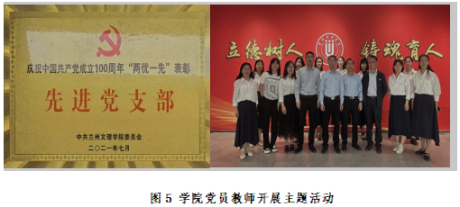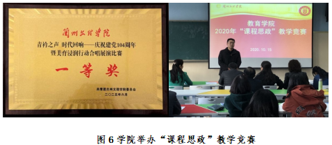 培根铸魂,践行立德树人使命:学院认真贯彻落实习近平新时代中国特色社会主义思想和习近平总书记关于教育的重要论述,紧扣以“三全育人”为核心,以“立德树人”为根本的教育教学主线,强化基层党组织战斗堡垒作用和党员模范带头作用,突出思想政治教育和课程思政。近三年,学院获教育厅党建研究重点项目1项,甘肃省教育领域党的建设研究课题4项,1人获省教育厅“优秀双带头人”,获学校“双带头人”工作室,学校党建工作“标杆学院”创建单位、学校党建工作“样板支部”创建单位。此外,学院荣获优秀微党课及优秀主题党日一等奖1项,二等奖2项,三等奖1项。