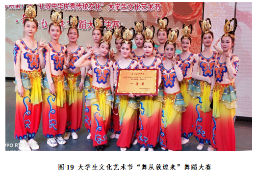 优秀传统文化艺术与师范教育深度融合:学院立足学校“敦煌文化艺术”“非遗传承”等特色专业及资源优势,构建了“文化认知—艺术体验—教育转化”三位一体的育人路径,致力于培养兼具文化传承使命感与现代教育创新力的教育人才。在课程中融入敦煌文化艺术和非遗元素,同时开展“舞从敦煌来”“非遗手工技艺展”等特色活动,实现文化传承与专业发展的双向赋能。培养既具备扎实专业素养,又能在教育教学中传承和弘扬本土文化艺术的应用型人才,为师范教育注入独特的文化内涵。