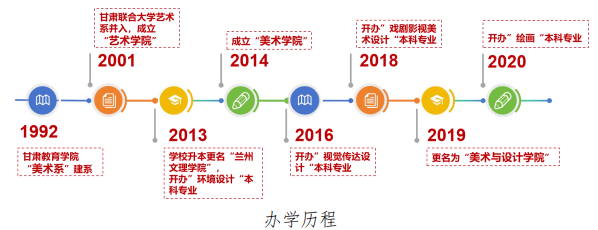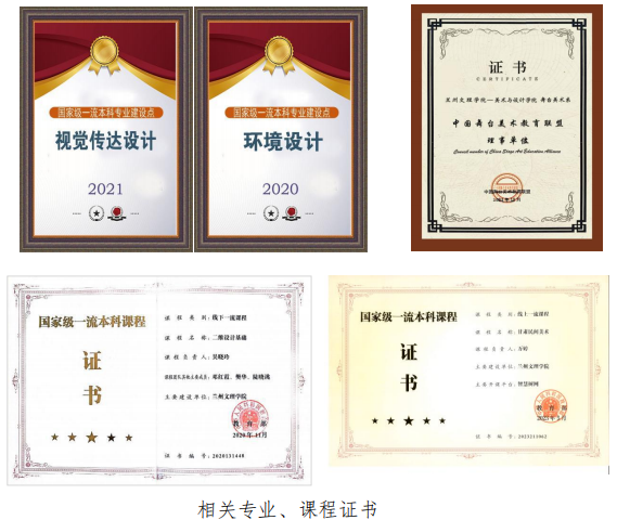 学科专业布局紧密对接区域需求,形成"以美术为基础、设计为重点、戏剧影视为特色"的学科专业群。2021、2022年,环境设计、视觉传达设计专业双双入选教育部"国家级一流本科专业建设点","二维设计基础"、"甘肃民间美术"获批"国家级一流本科课程"。戏剧影视美术设计专业作为省内唯一布点,获批甘肃省文旅厅"甘肃省舞台艺术创