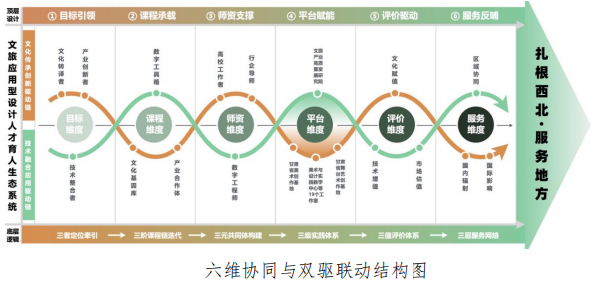 学院深刻把握西北地区在国家"一带一路"建设和文化强国战略中的独特地位,将敦煌艺术、黄河文化、甘肃非遗转化为艺术教育的内核,提出"六维协同·双驱联动"育人模式,为西部设计教育提供可复制的"甘肃方案"。