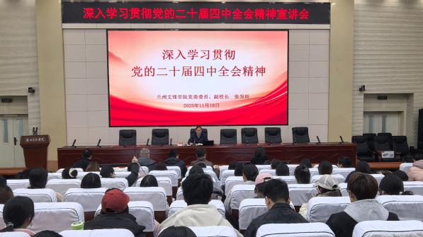 11月21日,校党委委员、副校长李敏骞为后勤管理处、美术与设计学院、音乐舞蹈学院、艺术职业学院等单位师生代表作专题宣讲,他结合学习体会,系统解读“十五五”时期指导方针、基本原则和经济社会发展目标,强调要将学习贯彻全会精神作为首要政治任务,要求师生准确把握其核心要义与实践要求,自觉在思想上政治上行动上同党中央保持高度一致。