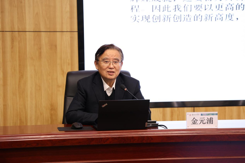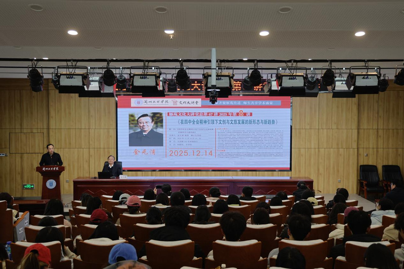 12月14日下午,中国人民大学教授、博士生导师金元浦应邀来校,为师生作题为“在党的二十届四中全会精神引领下文创与文旅发展的新形态与新趋势”的专题讲座。讲座由校长王顶明主持,文学院、旅游学院师生代表参加。