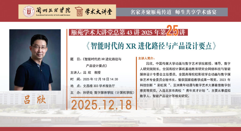 雁苑学术大讲堂预告:《智能时代的 XR 进化路径与产品设计要点》
