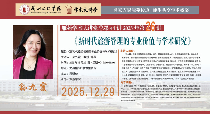 雁苑学术大讲堂预告:《新时代旅游管理的专业价值与学术研究》